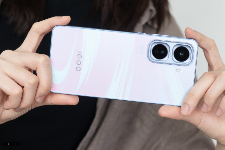 iQOONeo11的DECO采用悬浮之镜设计,无论你是从哪个角度去看,这两颗摄像头都有悬浮的效果。细节上,镜头的四周有着铝合金漩涡纹理,像是在“托举”着摄像头,呈现出立体感。